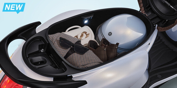 Bagasi luas 27L yang dilengkapi dengan lampu LED untuk memuat berbagai perlengkapan berkendara serta fashion item-mu!